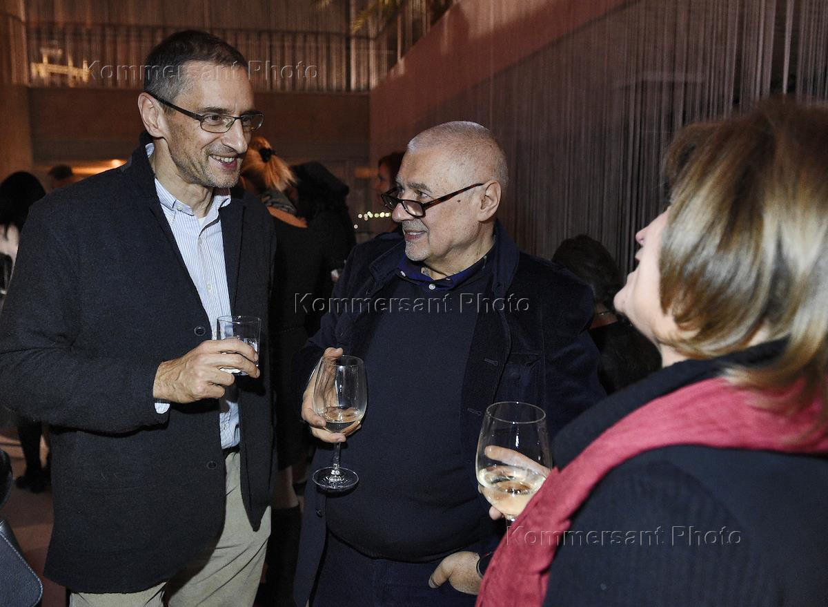 Вечеринка по случаю запуска проекта журналиста Михаила Зыгаря "1917. Свободная история" прошла в Государственной Третьяковской галерее на Крымском валу. Основатель и почетный президент компании "Вымпел-Коммуникации" (торговая марка — "Билайн") Дмитрий Зимин (слева) во время вечеринки.