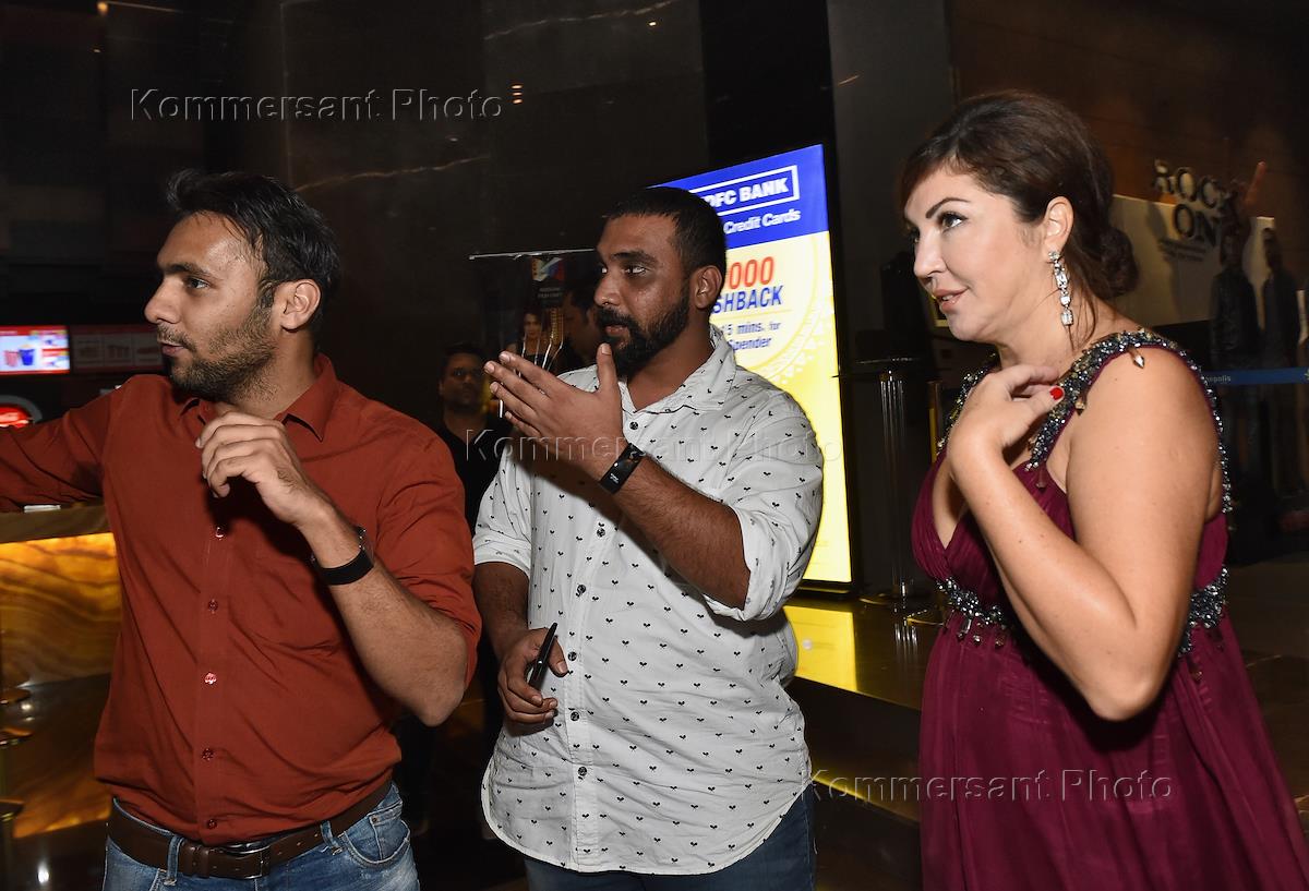 Кинофорум "Дни российского кино в Мумбаи". Слева направо: заместитель председателя Союза кинематографистов России Олег Иванов, актриса екатерина Шпица и редакционный директор российской версии журнала The Hollywood Reporter, кинообозреватель Мария Лемешева на презентации журнала The Hollywood Reporter.