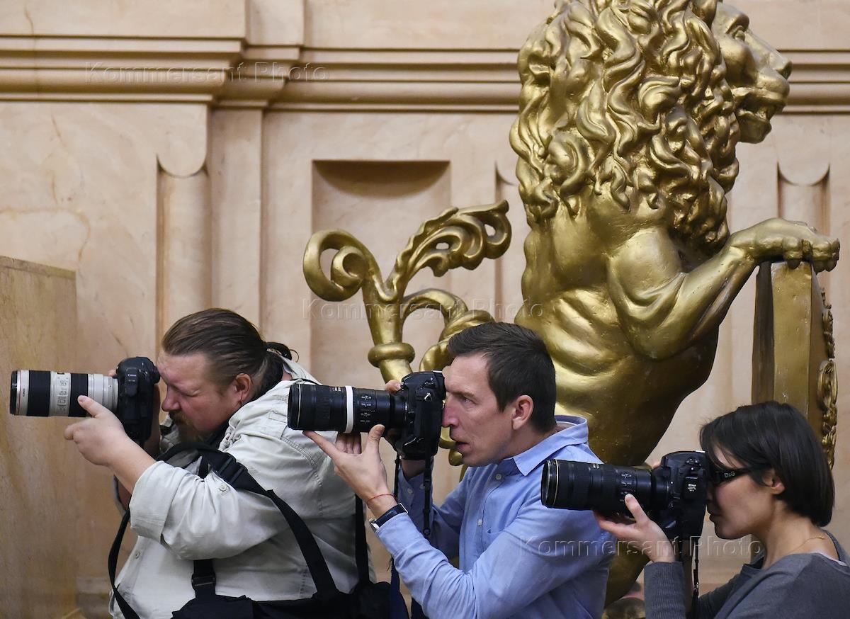 Пресс-показ выставки "Боги и герои Древней Греции" в Государственном историческом музее. Фотокорреспонденты во время пресс-показа.