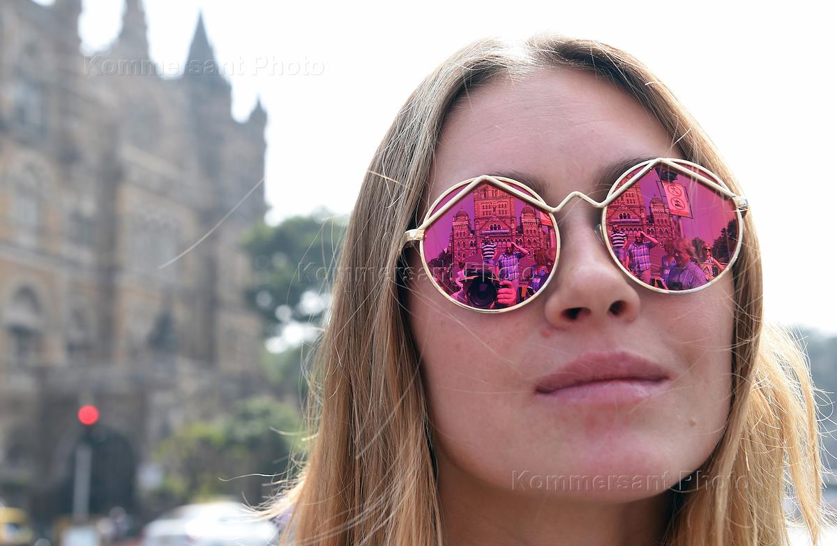 Кинофорум "Дни российского кино в Мумбаи". День третий. Актриса Ольга Филиппова во время прогулки по городу.