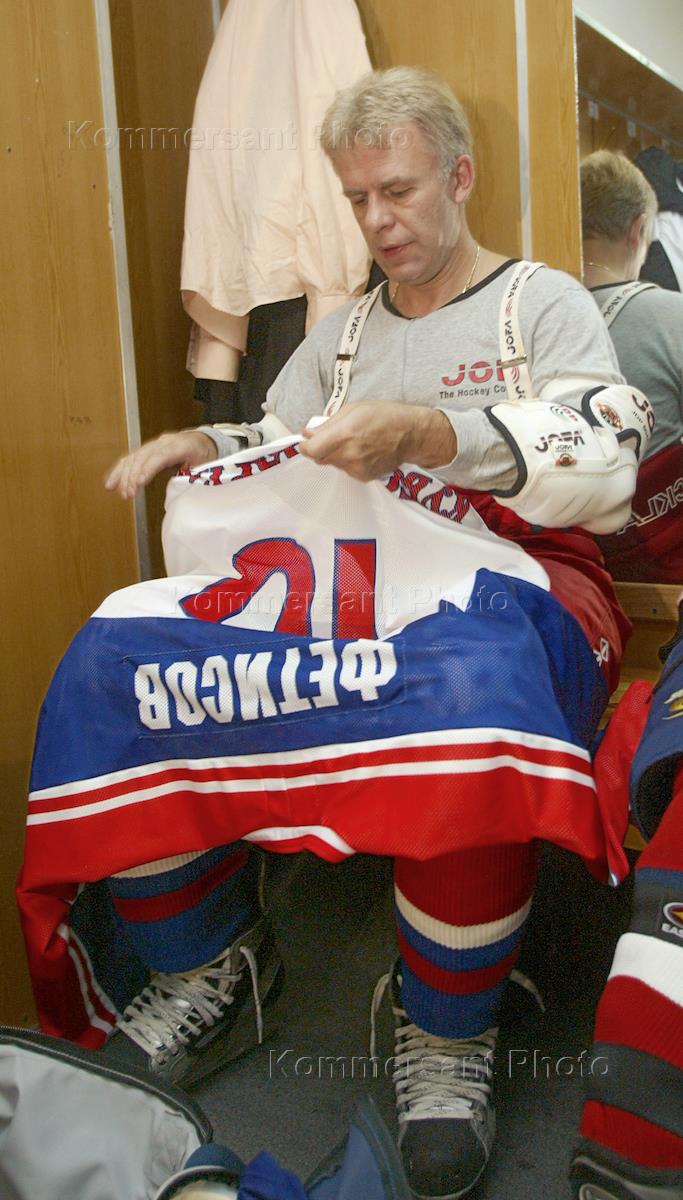 Chairman of the Russian State Sports Committee (Goskomsport), legend of the Soviet national ice-hockey team Vyacheslav Fetisov readies to take part in the match between veterans of Russia and Ukraine, held within the frameworks of the Spartak Cup. The match was eventually won by the Ukrainian team of veterans by 4:2.