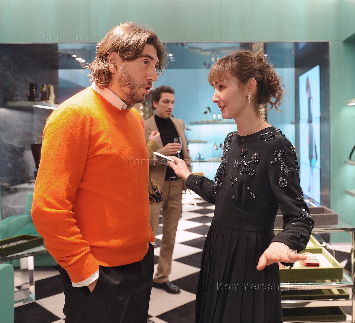 Диджей (DJ) Виталий Козак (слева) и креативный директор ЦУМ Наталья Гольденберг (справа) на коктейле перед закрытым показом короткометражного фильма Дэвида О.Рассела, в рамках международного проекта Past Forward Prada в бутике Prada.