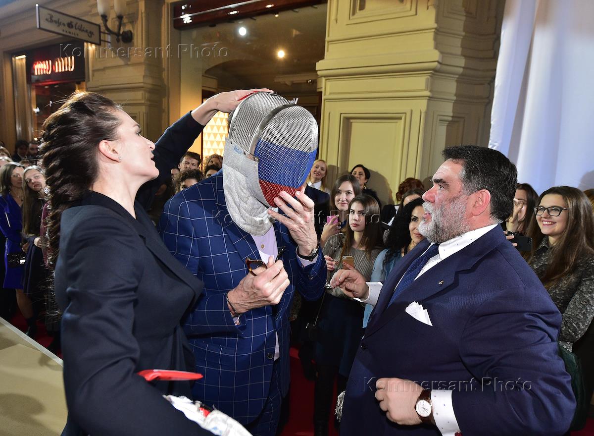 Председатель наблюдательного совета компании Bosco di Ciliegi Михаил Куснирович (слева), дизайнер Пол Смит (в центре) и актриса Ингеборга Дапкунайте (справа) на 10-летнем юбилее бутика Paul Smith в ГУМе на Красной площади.