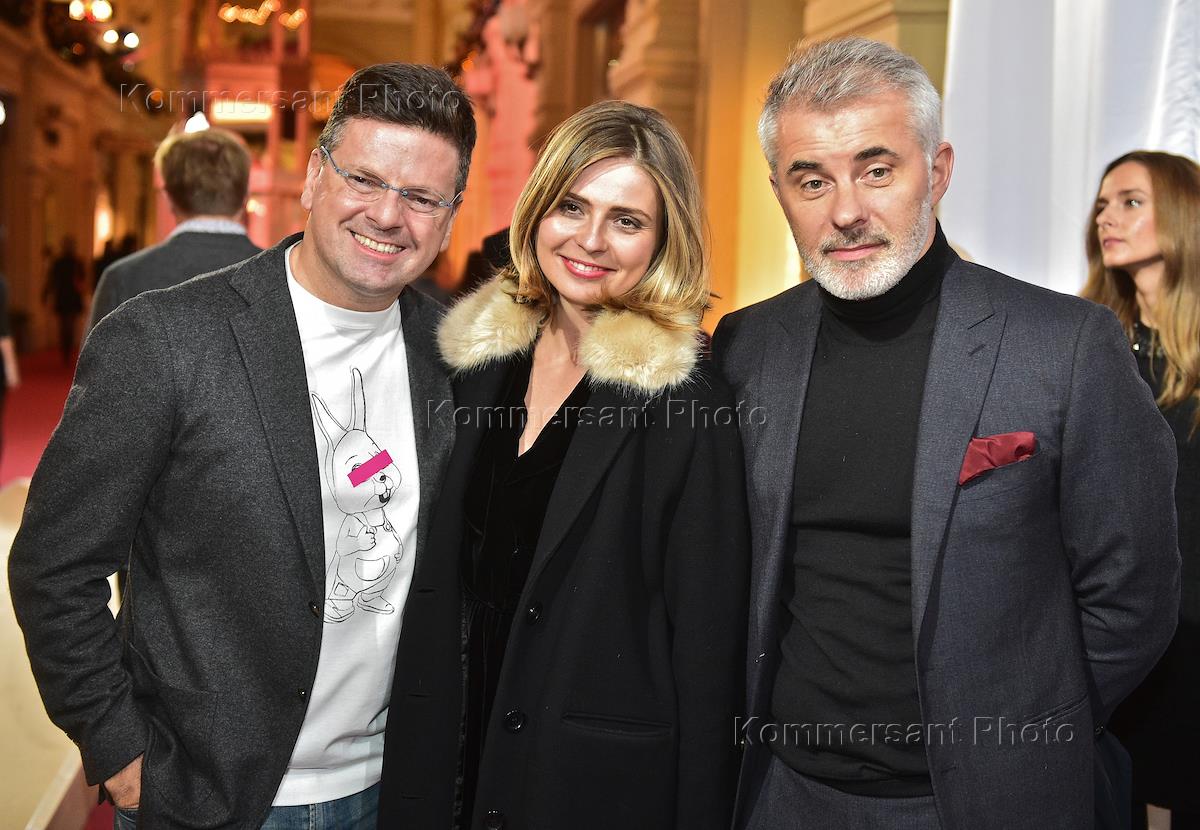 Председатель наблюдательного совета компании Bosco di Ciliegi Михаил Куснирович (слева), дизайнер Пол Смит (в центре) и актриса Ингеборга Дапкунайте (справа) на 10-летнем юбилее бутика Paul Smith в ГУМе на Красной площади.