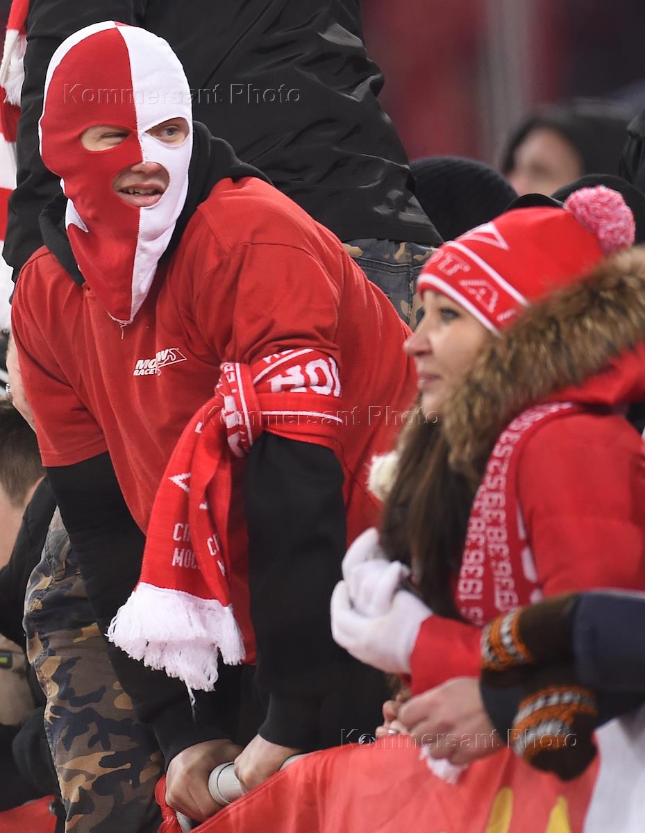 Чемпионат России по футболу. Премьер-лига. Матч между командами "Спартак" (Москва) - "Амкар" (Пермь) на стадионе "Открытие Арена". Болельщики команды "Спартак" на трибуне во время матча.