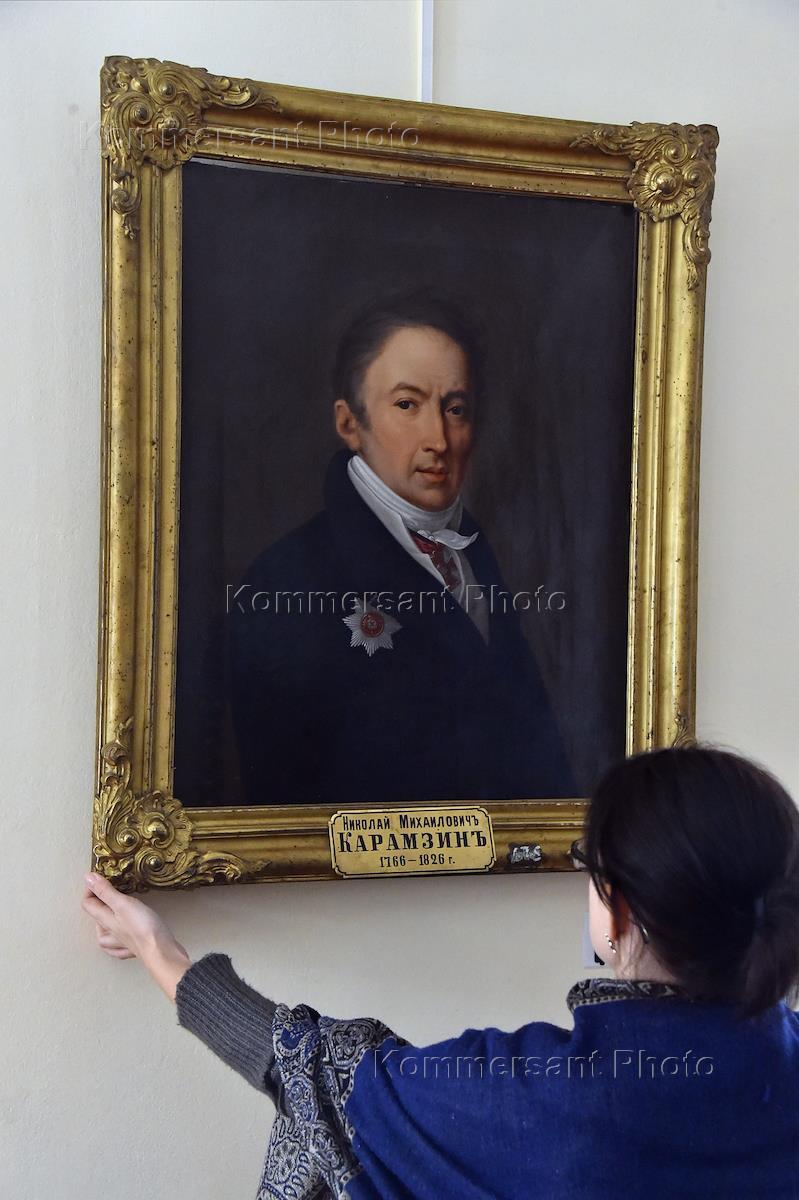Интерьеры Карамзинской общественной библиотеки. Портрет историка Николая Карамзина.