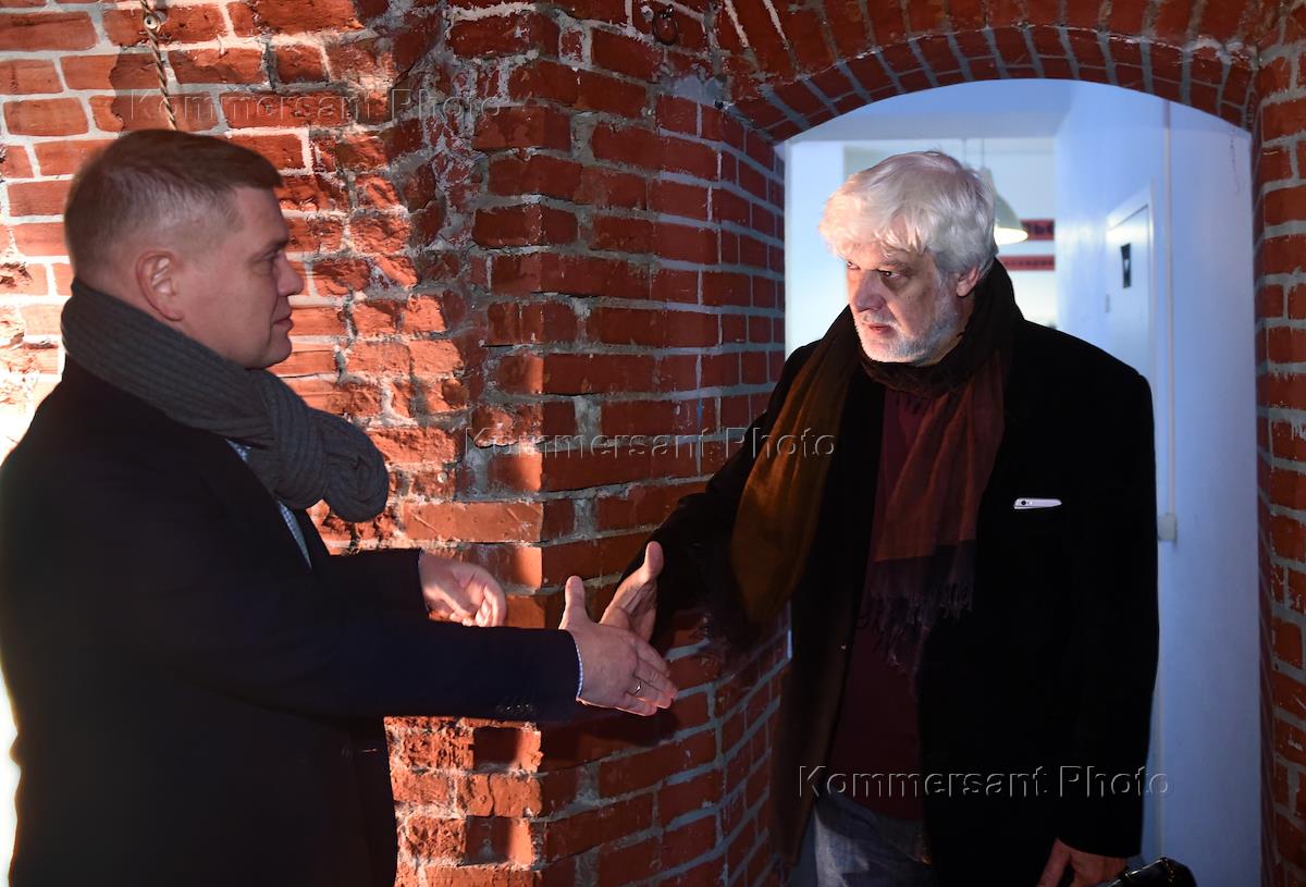 Финал конкурса драматургии "Кульминация" прошел в Боярских палатах СТД России. Председатель президиума Фондом развития современного искусства (ФРСИ), продюсер Иван Демидов (слева) и художественный руководитель "Мастерской Дмитрия Брусникина", актер, режиссер Дмитрий Брусникин (справа) во время финала.