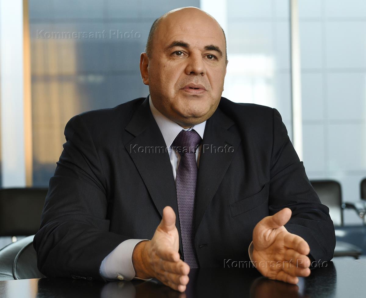 Head of the Russian Federal Tax Service Mikhail Mishustin during an interview.