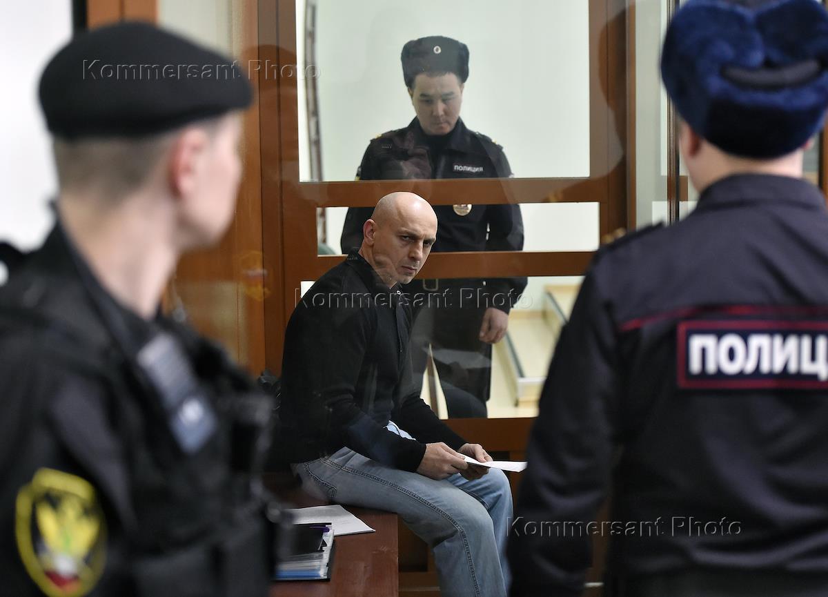 Рассмотрение дела соучастника захвата заложников в Театральном центре на Дубровке. Обвиняемый в причастности к захвату заложников в театральном центре на Дубровке в 2002 году Хасан Закаев во время заседания в Московском окружном военном суде.