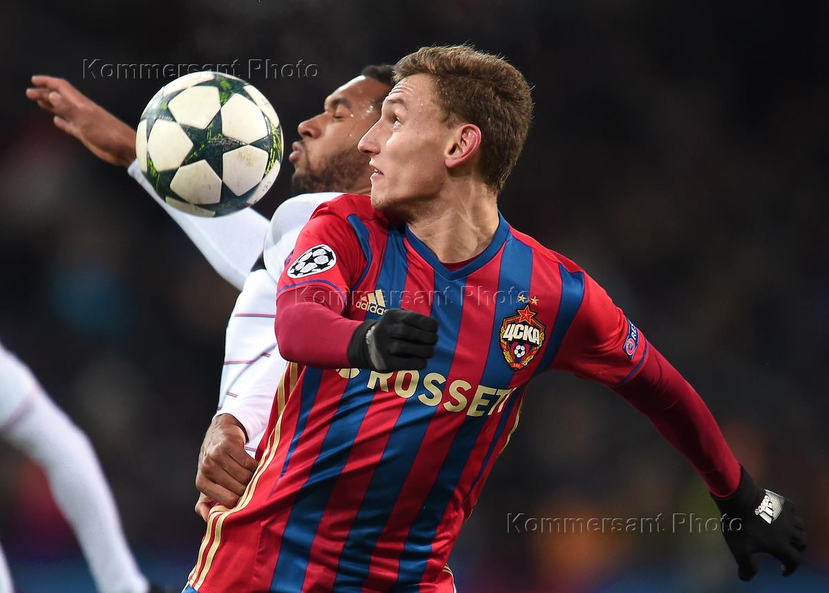Bibras Natkho of CSKA Moscow runs with the ball during UEFA Champions League group stage match between CSKA Moscow (Russia) and Bayer 04 Leverkusen (Germany) at the Arena CSKA stadium.