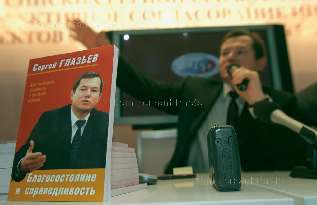 Chairman of the Russian Communitites Congress (KRO) Sergey Glazyev takes part in the presentation of his new book - 'Wellfare and Justice: How to Defeat Poverty in a Rich Country'. The presentation was held in the Manezh exhibition hall.