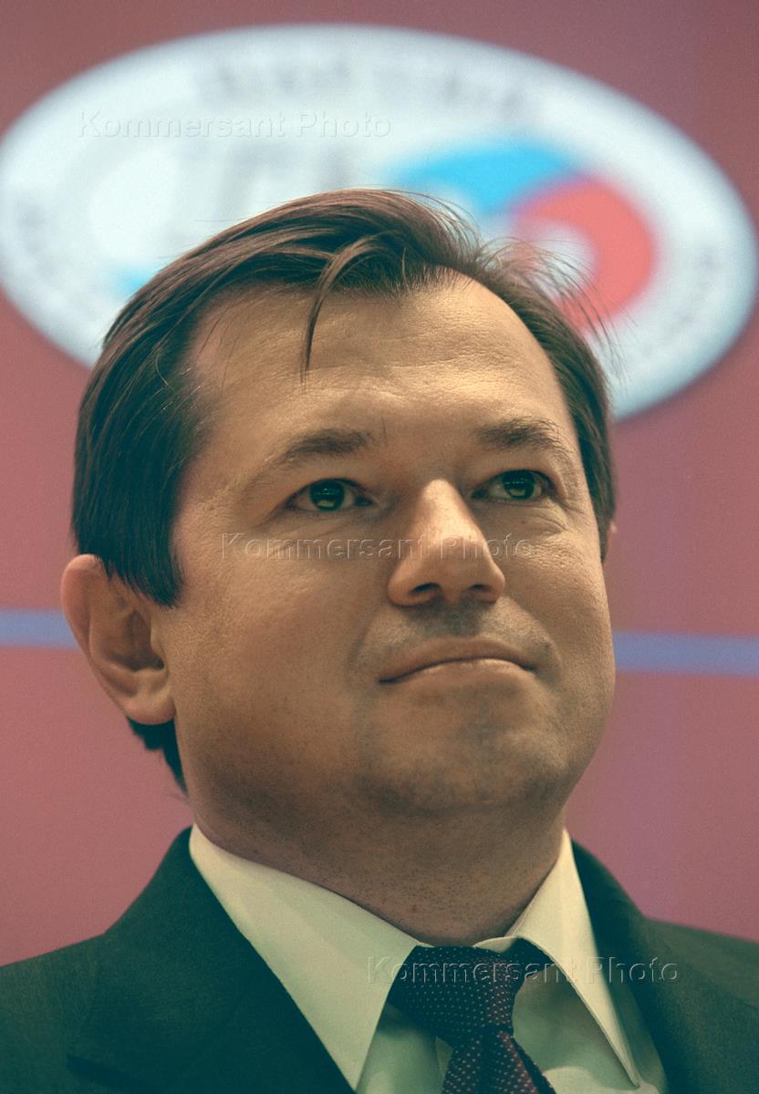 Chairman of the Russian Communitites Congress (KRO) Sergey Glazyev (right) takes part in the presentation of his new book - 'Wellfare and Justice: How to Defeat Poverty in a Rich Country'. The presentation was held in the Manezh exhibition hall.