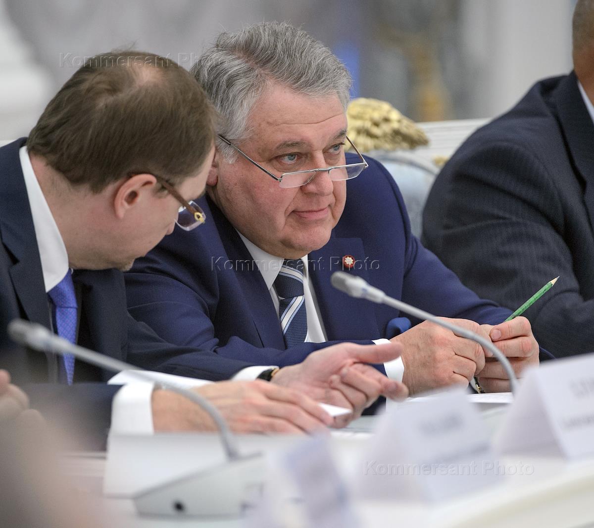 Заседание Совета по науке и образованию. Президент РАН Владимир Фортов (слева) и руководитель администрации президента России Антон Вайно (справа) на заседании Совета в Кремле.