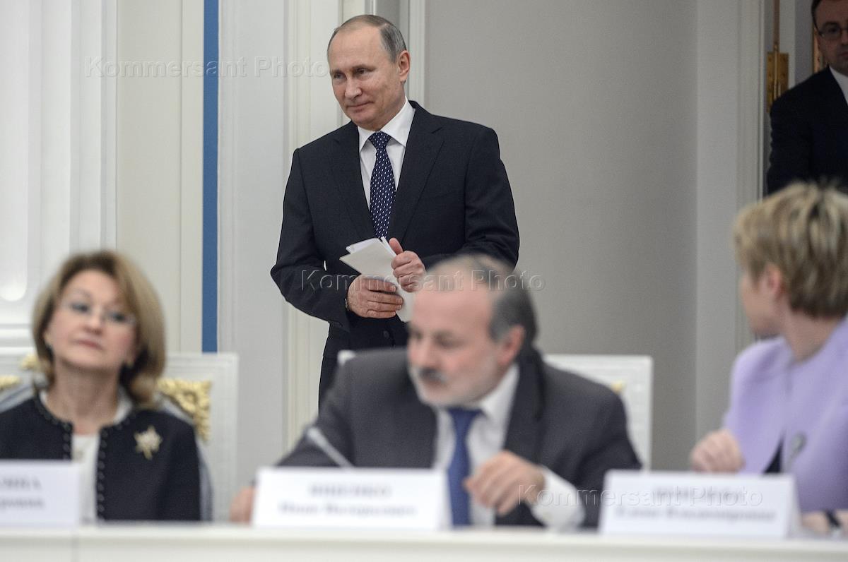 Заседание Совета по науке и образованию в Кремле. Президент России Владимир Путин (в центре) на заседании.