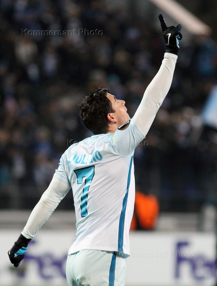 Лига Европы 2016-2017. Матч группового этапа Лиги чемпионов между ФК "Зенит" (Санкт-Петербург, Россия) и ФК "Дандолк" (Ирландия, Дандолк). Игрок команды "Зенит" Александр Кержаков (справа) во время матча.