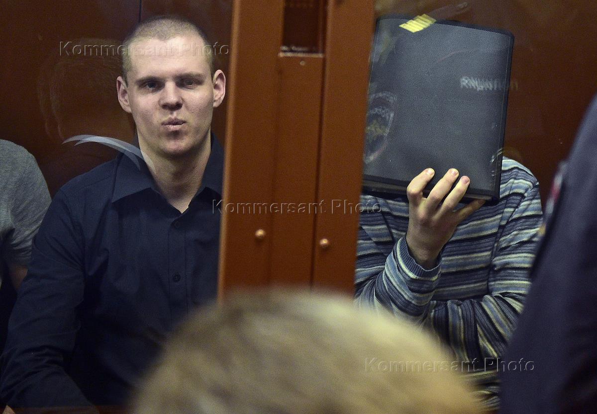 Фигуранты уголовного дела о движении по борьбе с торговцами синтетическим наркотиком "спайс" во время рассмотрения дела по существу в Бабушкинском суде.