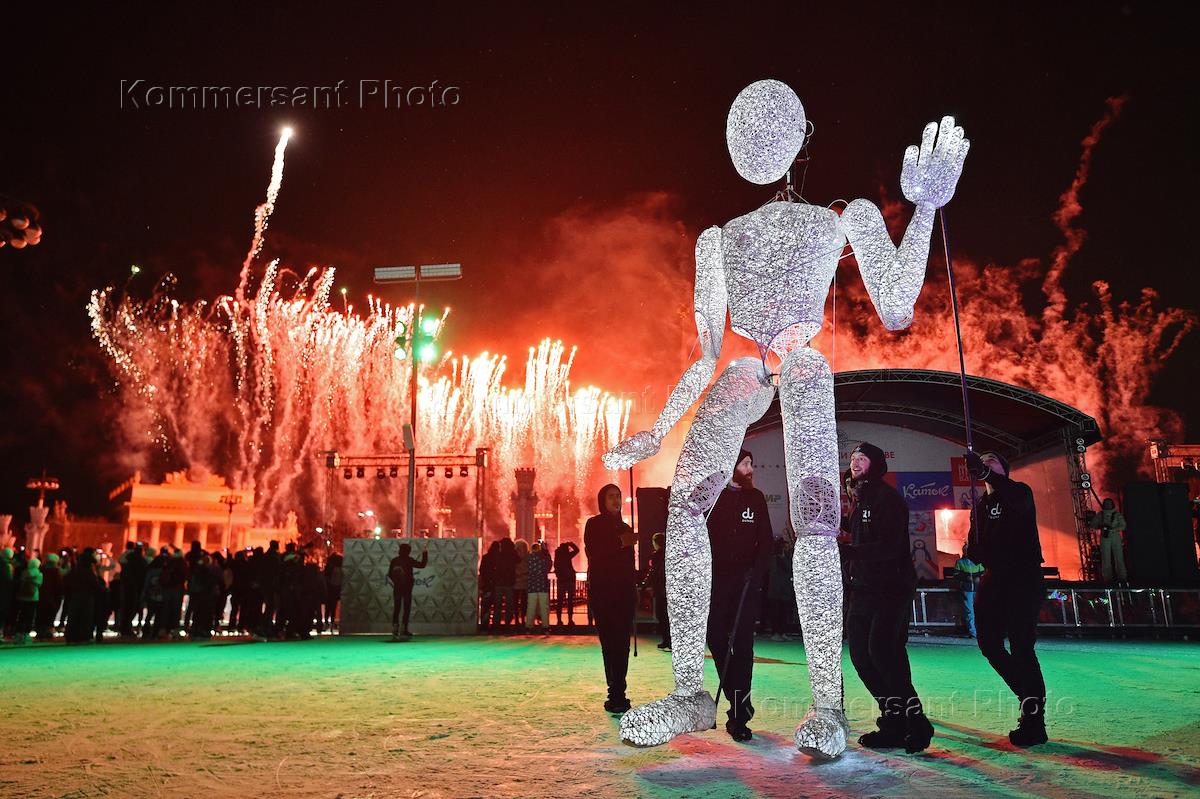 Торжественная церемония открытия третьего сезона катка ВДНХ. Выступление немецкого светового театра DUNDU во время церемонии.