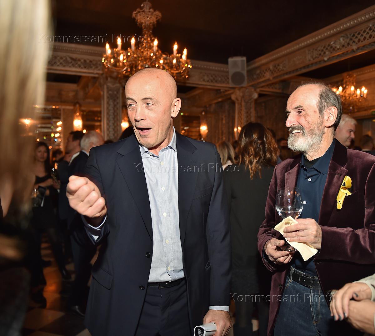 Торжественный ужин в честь празднования 20-го юбилея Мультимедиа Арт Музея (МАММ) прошел в ресторане "Турандот". Председатель совета директоров ЦБК "Волга", председатель совета директоров "Ост Вест Групп", председатель попечительского совета премии Кандинского, президент культурного фонда "АртХроника" Шалва Бреус (слева) и художник Эрик Булатов (cправа) во время ужина.