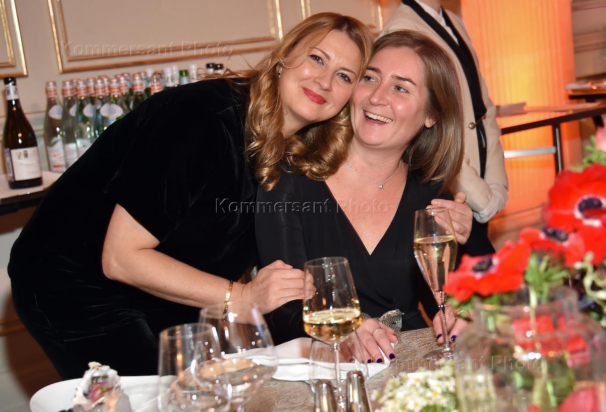 Председатель совета директоров некоммерческого партнерства "Русбренд" Давид Якобашвили (cлева) и директор Государственной Третьяковской галереи Зельфира Трегулова (справа) на торжественном ужине, посвященном празднованию пятилетия Института русского реалистического искусства в отеле Four Seasons.