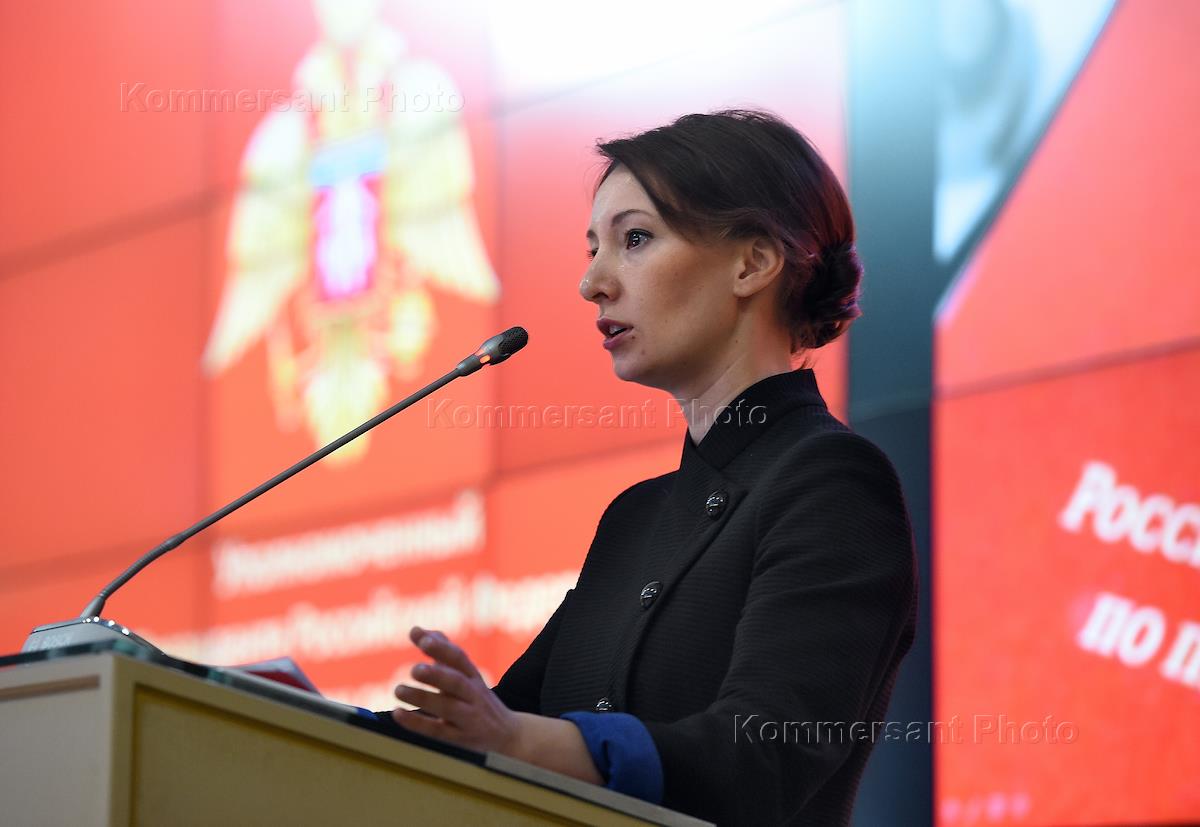 Всероссийское совещание уполномоченных по правам ребенка в субъектах Российской Федерации на тему "Совершенствование деятельности института уполномоченных по правам ребенка в России: проблемы, задачи, перспективы" с участием уполномоченного при президенте России по правам ребенка Анны Кузнецовой и первого заместителя руководителя Администрации президента России Сергея Кириенко. Уполномоченный при президенте России по правам ребенка Анна Кузнецова во время выступления на совещании в Общественной палате России.