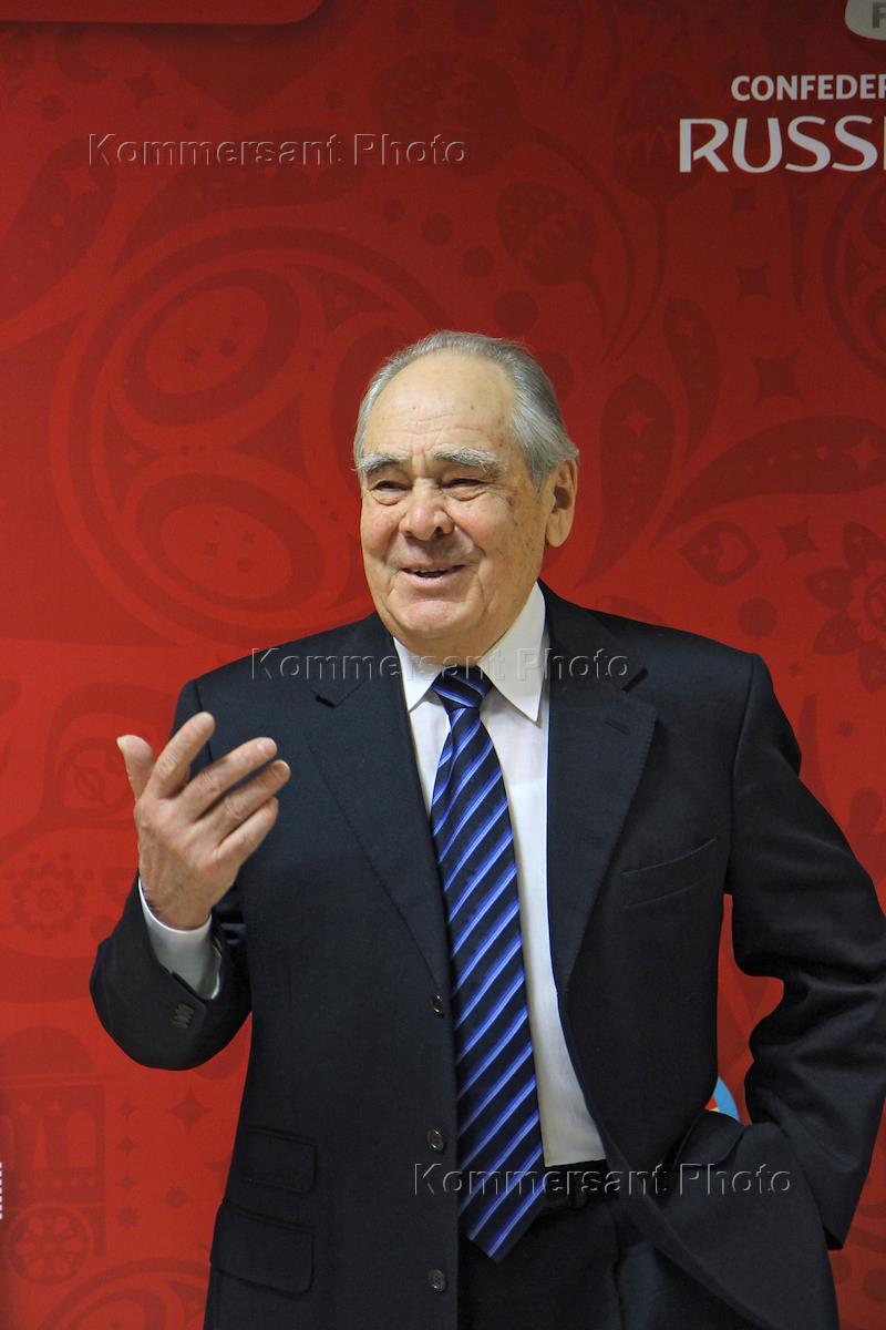 Former member of the Brazilian national football team Julio Baptista holds a trophy during the official draw ceremony of the FIFA Confederations Cup Russia 2017.