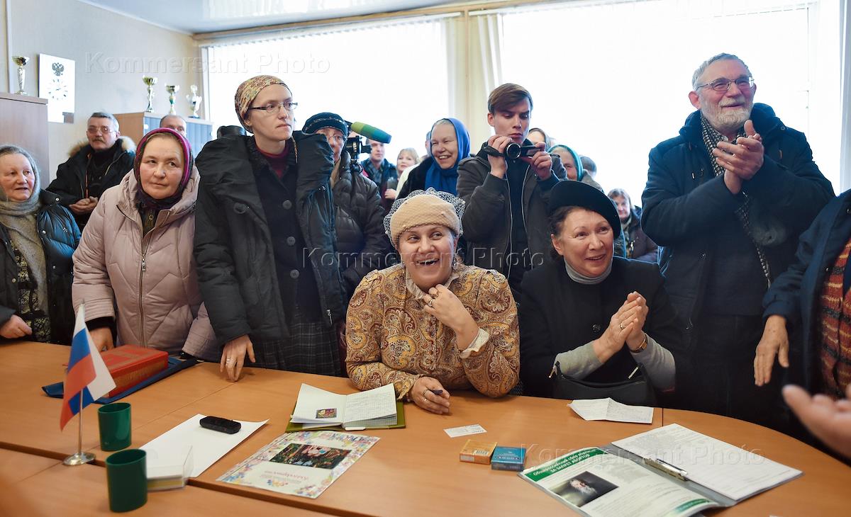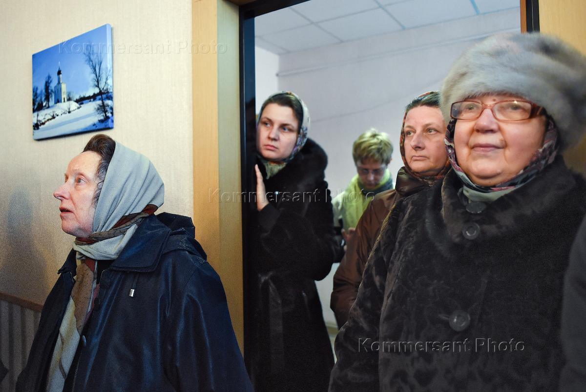 Строительство завода по производству лейкопластыря, подгузников и презервативов. Заместитель главы администрации Суздальского райна Владимирской области Татьяна Срибная (слева) во время встречи с прихожанами местного храма, недовольные строительством завода.