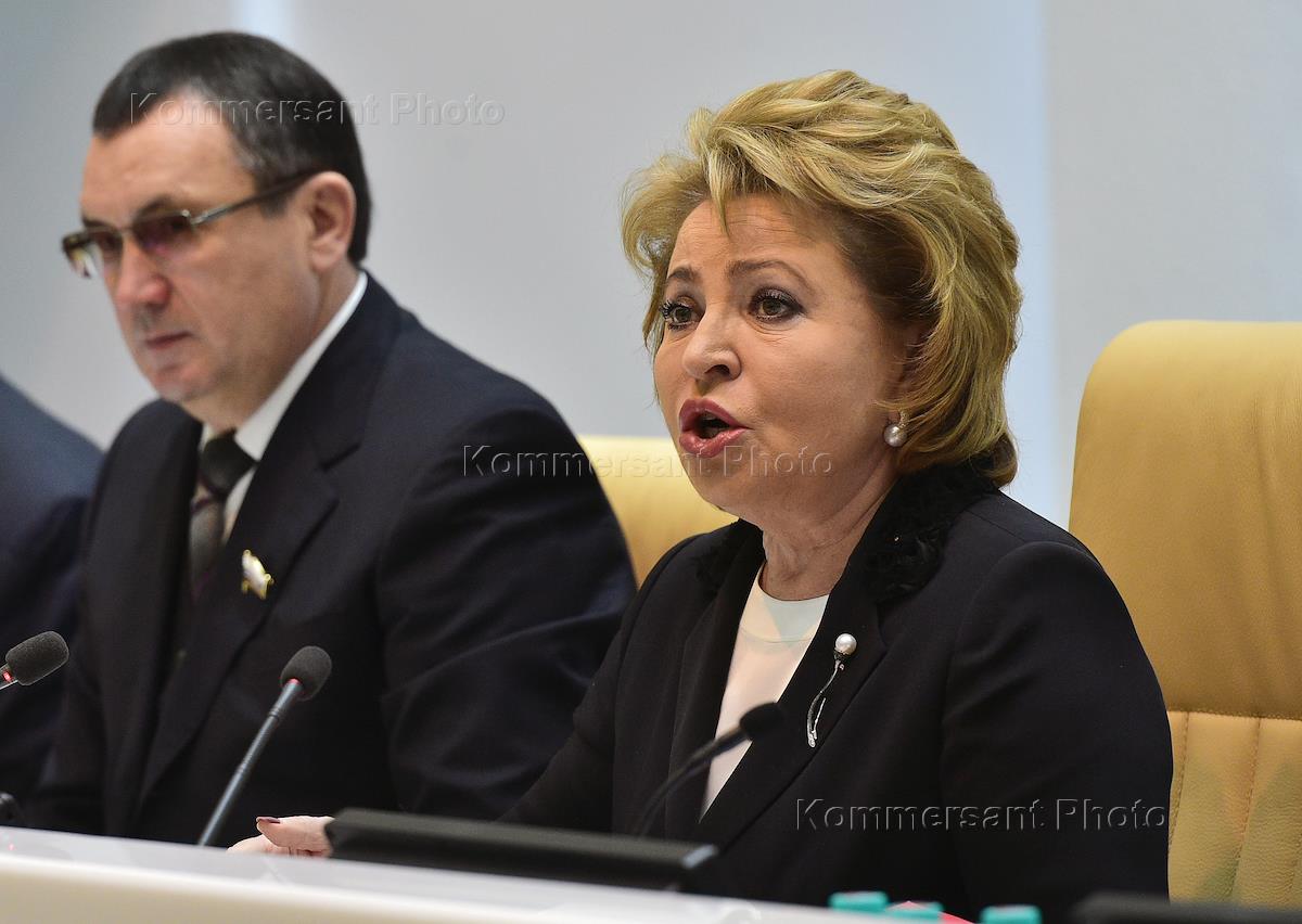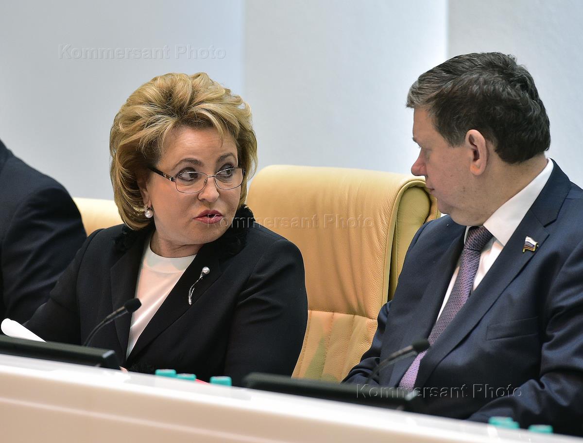 Председатель Совета Федерации России Валентина Матвиенко (справа) перед началом заседания Совета Федерации России.