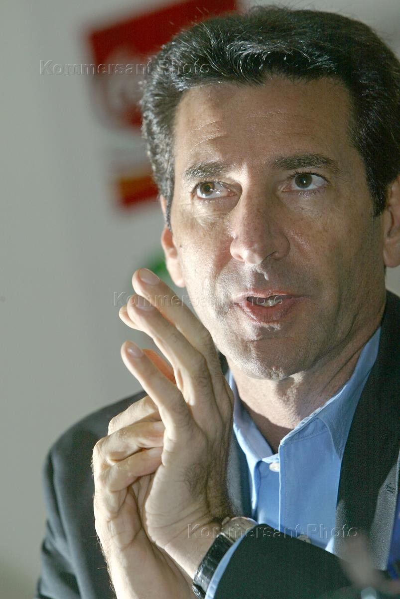 President of the Doors to Hollywood company Bob van Ronckel is interviewed at the news conference summoned to preview the 'Million of Smiles' action to be staged to raise money for orphanages of Moscow and Moscow Oblast. The news conference was held in the Balchug Kempinsky Hotel.