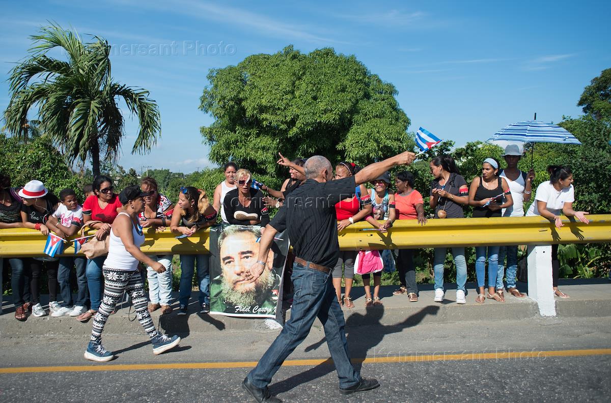 People wait for the arrival of the convoy of vehicles escorting the ashes of former Cuba's president, Cubas revolutionary leader, Fidel Castro.