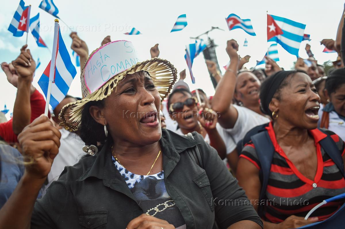 Похороны кубинского революционера, первого руководителя Кубинской Республики Фиделя Кастро. Кубинцы во время траурного митинга в память о Фиделе Кастро.