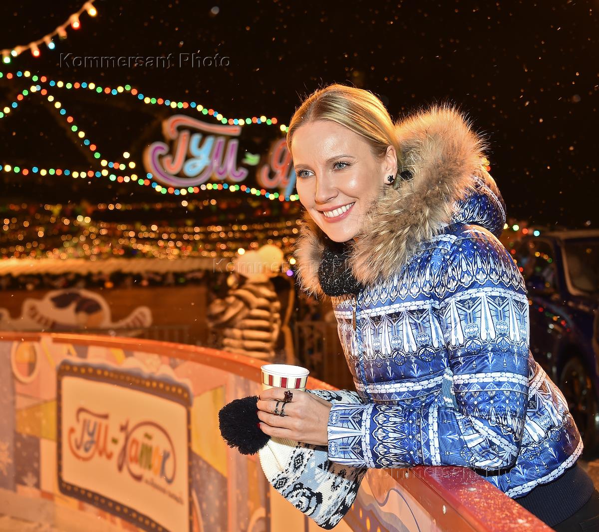 Церемония открытия XI сезона "ГУМ-Катка" и "ГУМ-Ярмарки" на Красной площади. Телеведущая Елена Летучая во время церемонии.