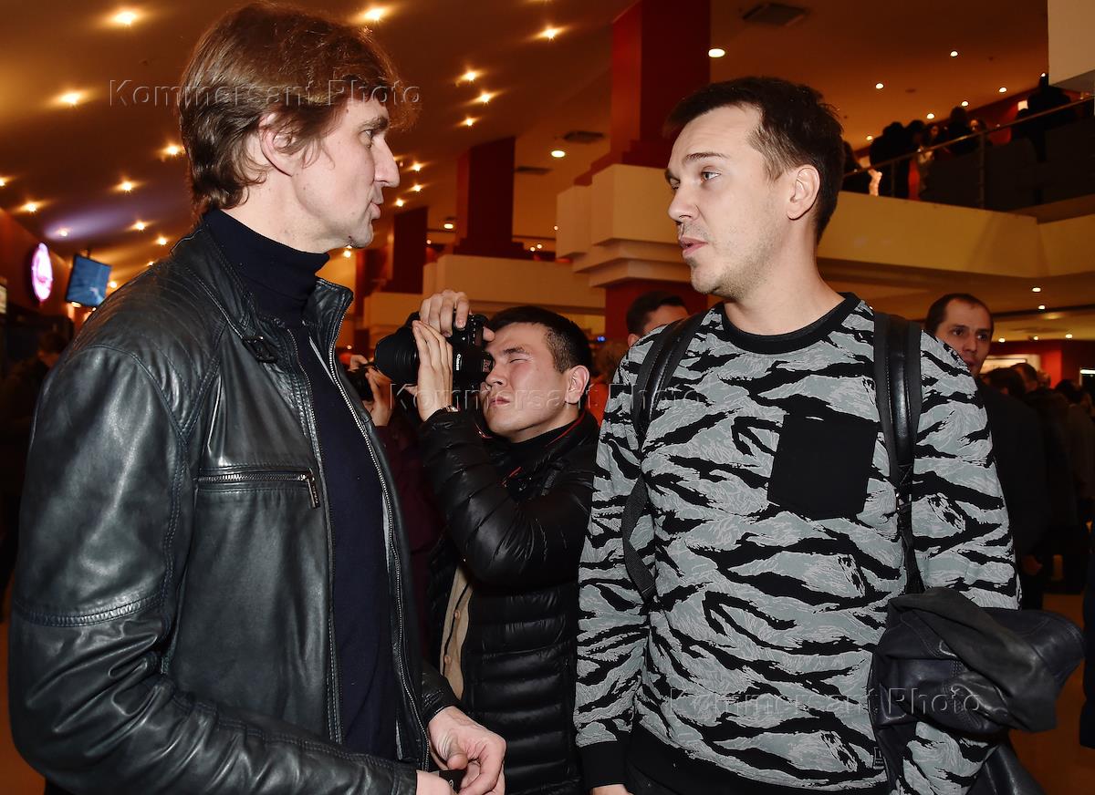 Закрытая премьера фильма Веры Кричевской и Михаила Фишмана о Борисе Немцове "Слишком свободный человек" в кинотеатре "Октябрь". Журналисты Станислав Кучер (слева) и Михаил Зыгарь (справа) на премьере.