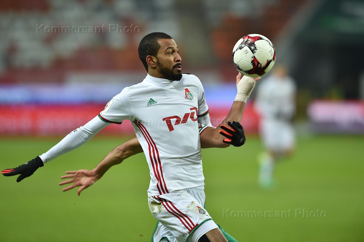 РОСГОССТРАХ - Чемпионат России по футболу. Премьер-лига. 17 тур. Матч между командами "Локомотив" (Москва) - "Терек" (Грозный) прошел на стадионе "Локомотив". Игрок команды "Локомотива" Майкон во время матча.