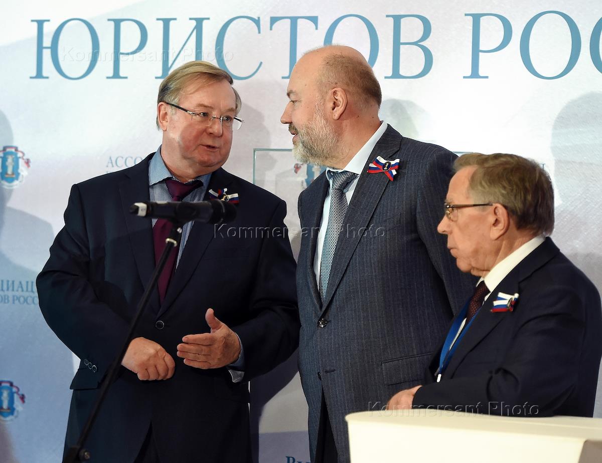Внеочередной VI съезд Ассоциации юристов России и Восьмая церемония вручения высшей юридической премии "Юрист года" прошел в здании Фундаментальной библиотеки Московского государственного университета имени М.В.Ломоносова. Слева направо: сопредседатель Ассоциации юристов России Сергей Степашин, председатель Ассоциации юристов России, председатель комитета Государственной думы России по государственному строительству и законодательству Павел Крашенинников, сопредседатель Ассоциации юристов России, советник президента России Вениамин Яковлев во время съезда.