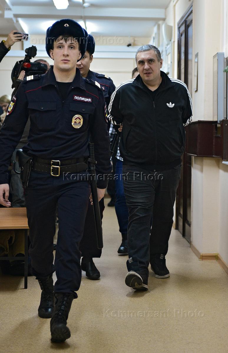 Заседание суда о рассмотрении ходатайства следствия о продлении срока ареста украинцам Евгению Панову и Андрею Захтею по делу о подготовке диверсий в Крыму в Лефортовском суде. Андрей Захтей (справа) перед началом судебного заседания.
