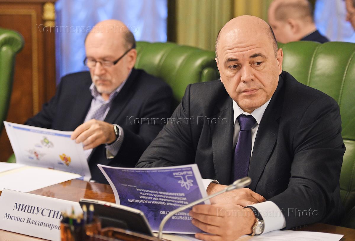 Заседание правительственной комиссии по координации деятельности Открытого правительства, на котором будет представлен ежегодный Рейтинг открытости федеральных органов исполнительной власти, прошло в Доме правительства России. Руководитель Федеральной налоговой службы России Михаил Мишустин во время заседания.