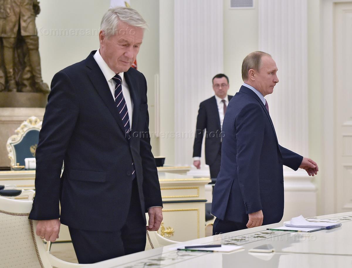 Генеральный секретарь Совета Европы Турбьёрн Ягланд (слева) во время встречи с президентом России Владимиром Путиным.