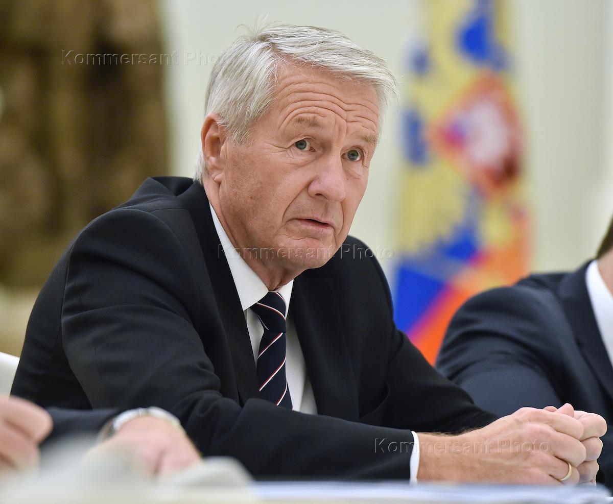 Secretary General of the Council of Europe Thorbjorn Jagland attends the meeting with Russian President Vladimir Putin at the Moscow Kremlin.