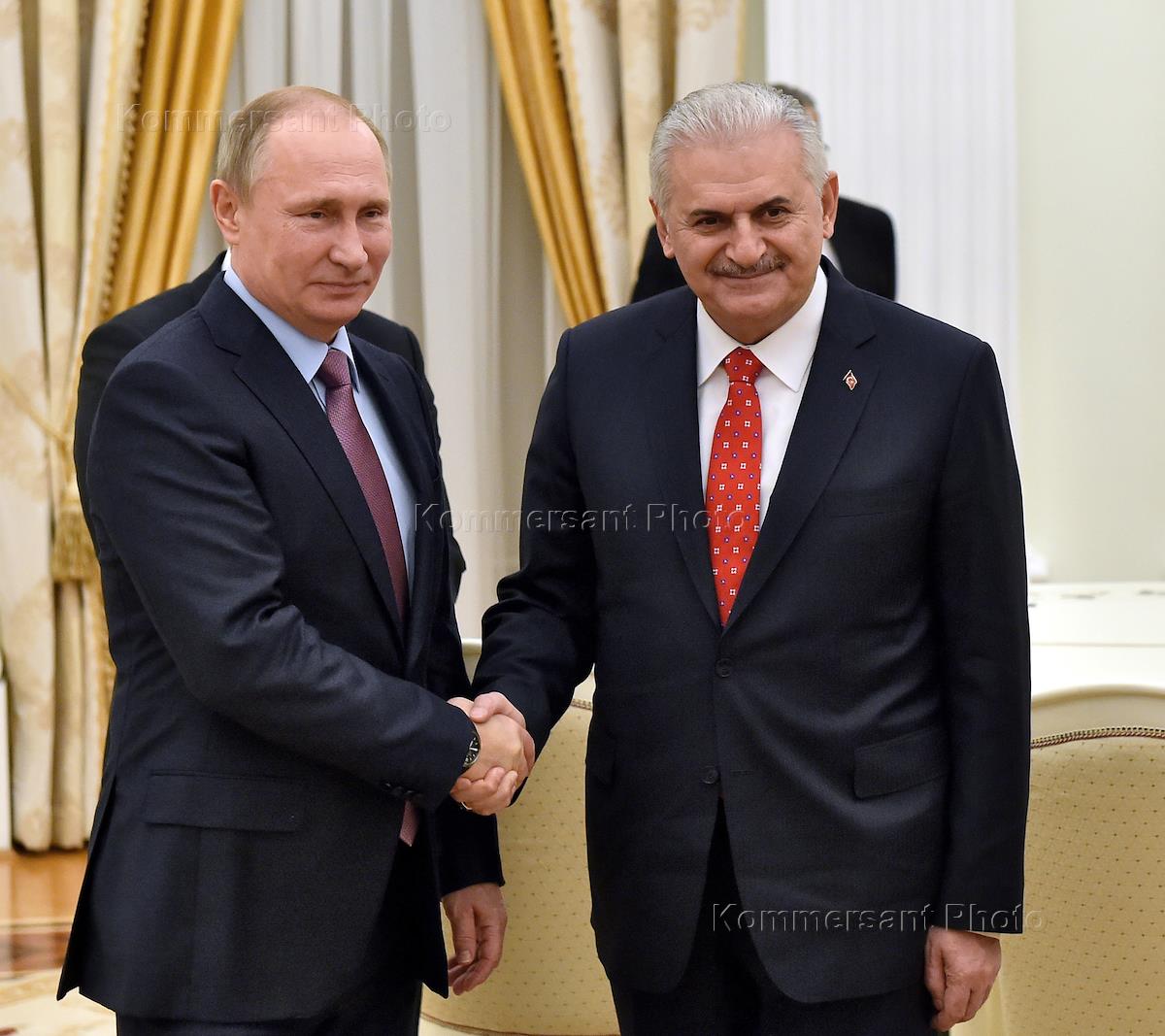 Russia's President Vladimir Putin (left) meets with Turkey's Prime Minister Binali Yildirim (right) at the Moscow Kremlin.