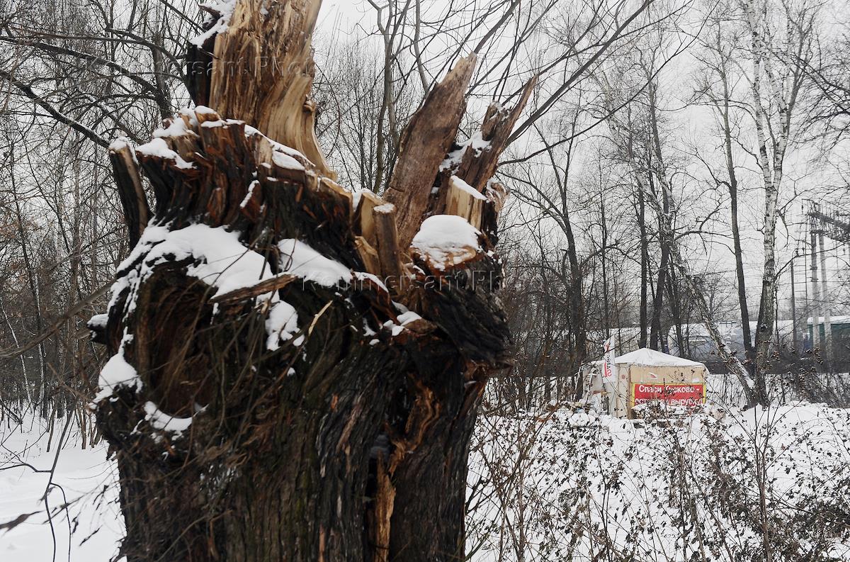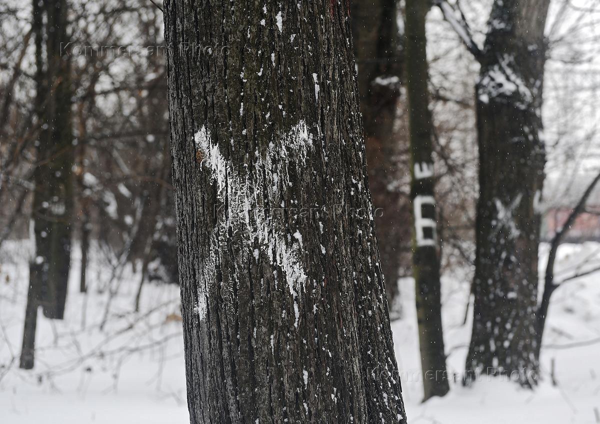 Жанровая фотография. Виды Москвы. Парк-Усадьба "Кусково". Дерево помеченное крестом для вырубки.