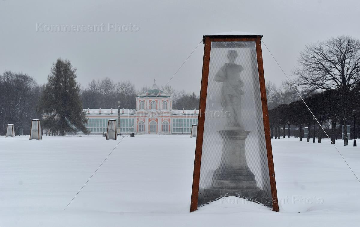 Жанровая фотография. Виды Москвы. Парк "Кусково". Ограждение. Строительство.