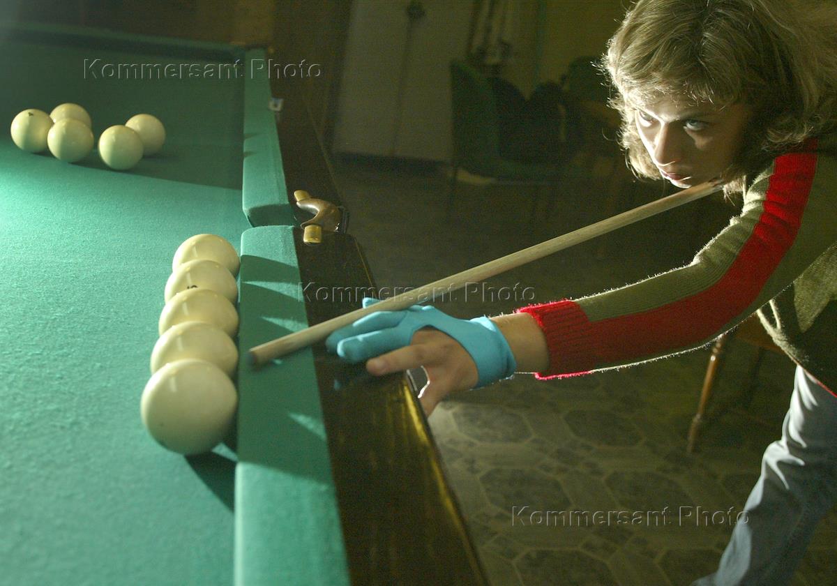 Девушка играет в бильярд клубе "ЦСКА".