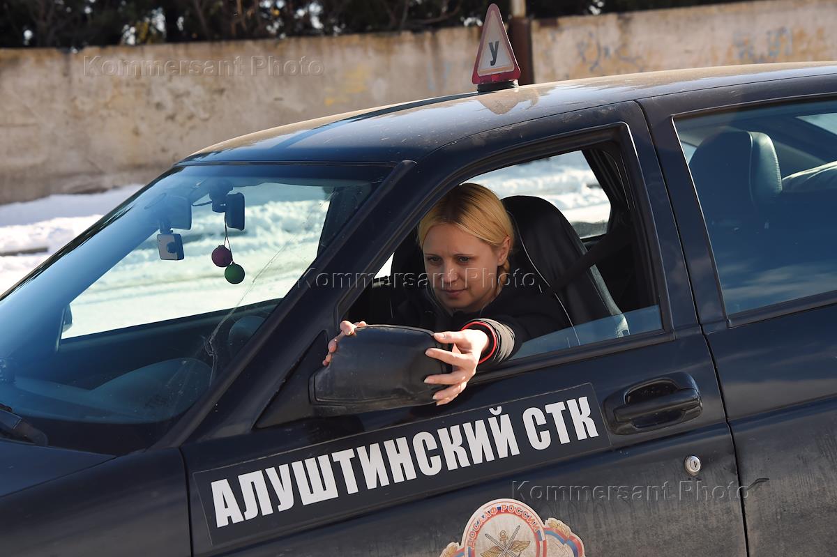Жанровая фотография. Учащаяся автошколы ДОСААФ во время практических занятий по вождению.