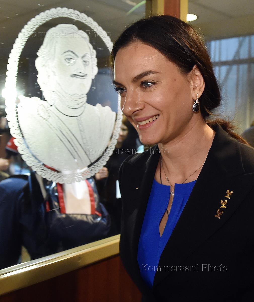 Двукратная олимпийская чемпионка в прыжках с шестом, член комиссии атлетов Международного олимпийского комитета (МОК) Елена Исинбаева перед началом отчетно-выборной конференции Всероссийской федерации легкой атлетики (ВФЛА). Конференция прошла в гостинице "Аэростар".