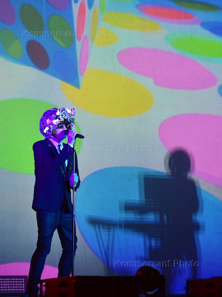 Участник британской группы Pet Shop Boys Нил Теннант во время выступления группы Pet Shop Boys на концерте ВТБ "Арена".