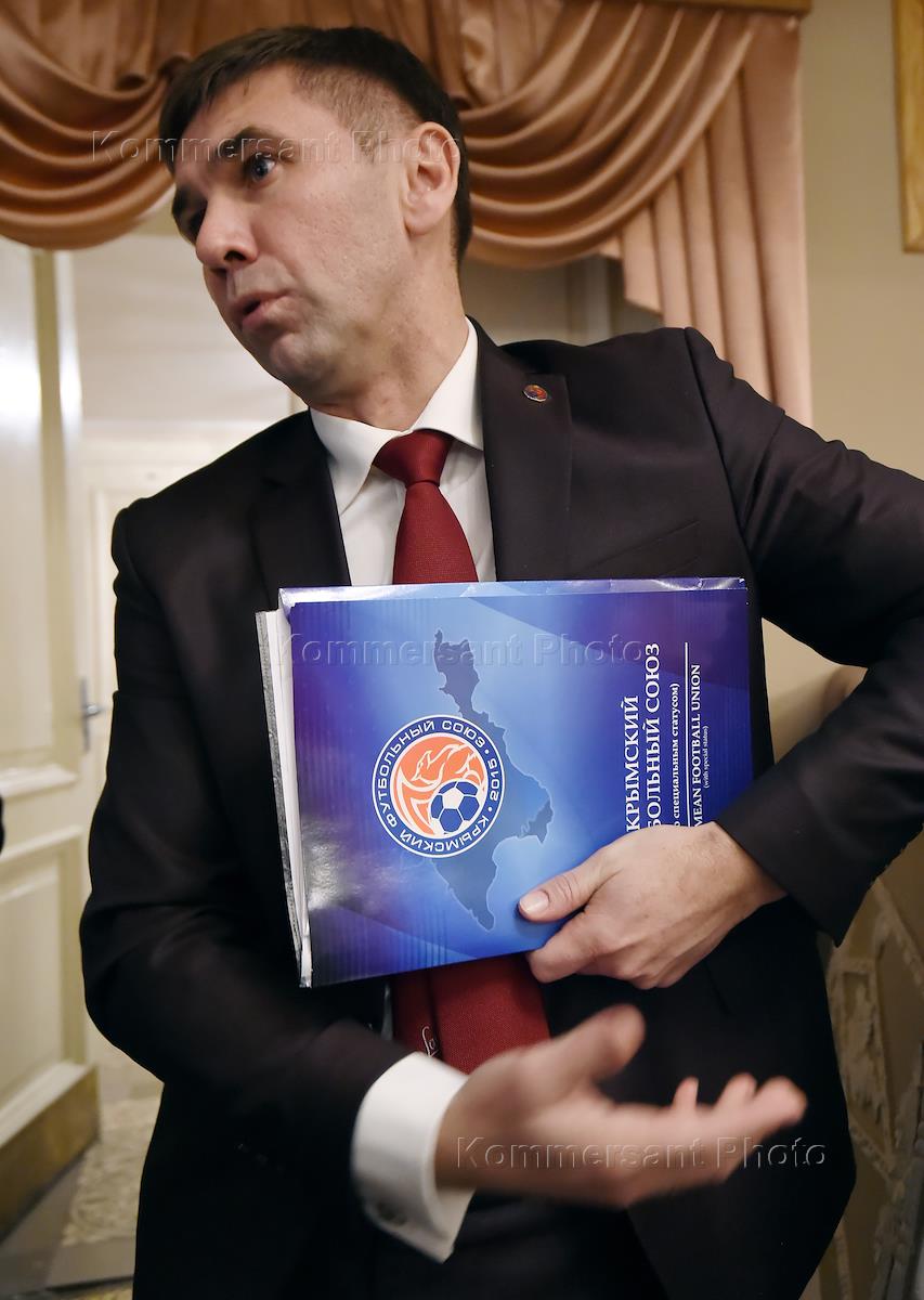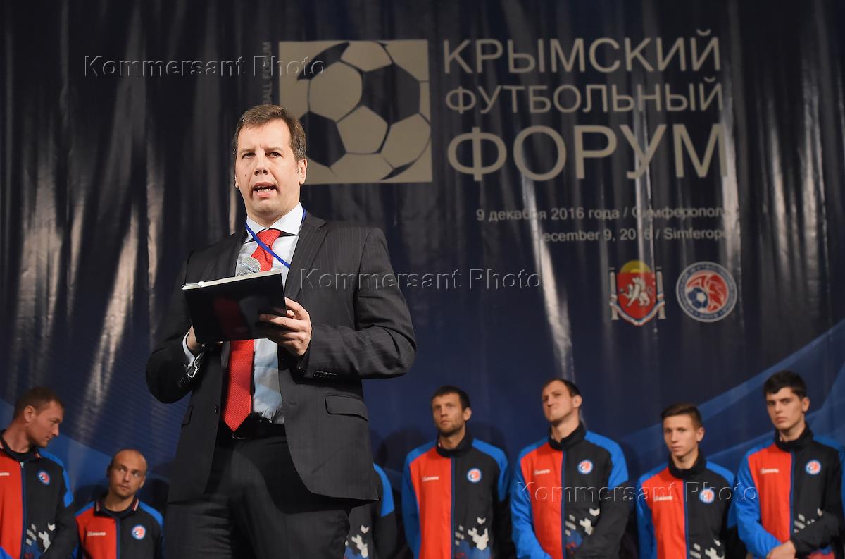 Крымский футбольный форум. Президент Крымский футбольного союза (КФС) Юрий Ветоха (в центре) на форуме.
