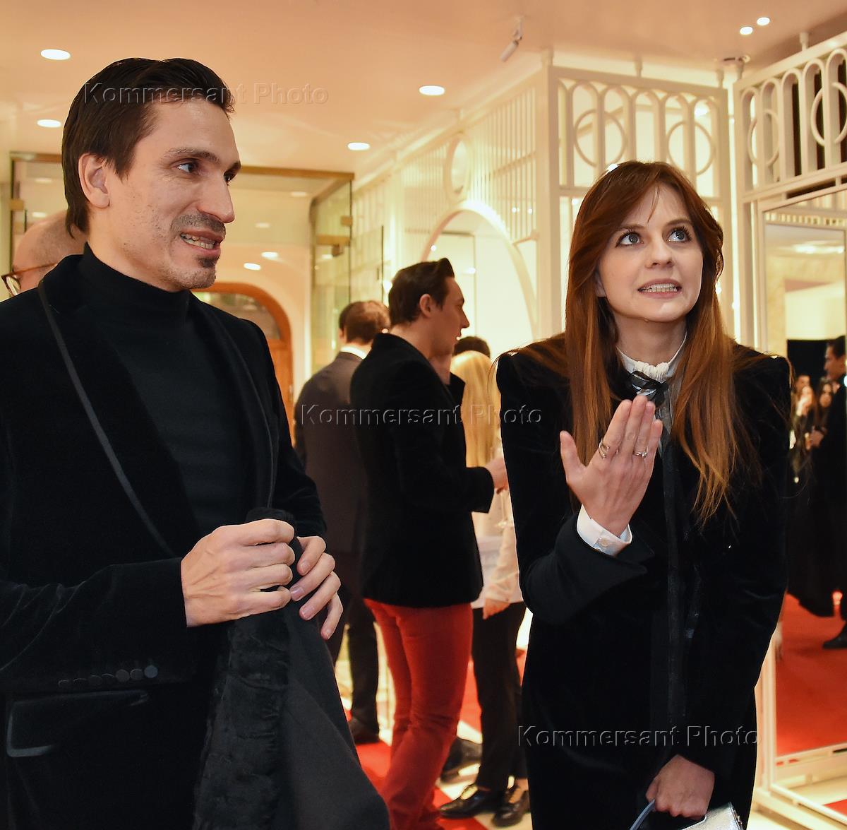 Коктейль по случаю открытия флагманского бутика Christian Louboutin в России в бутике Christian Louboutin. Телеведущая Сати Спивакова (справа) и певец Марк Тишман (слева) во время мероприятия.