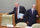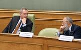 Генеральный директор ФГУП Росатомфлот Вячеслав Рукша (слева) и глава группы "Промышленные инвесторы" Сергей Генералов (справа) во время заседания государственной комиссии по вопросам развития Арктики, посвященное выполнению госполитики в регионе за год и плану работы в 2017 году. Заседание прошло в Доме правительства России.
