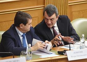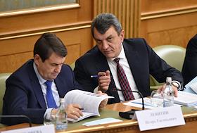 Помощник президента России Игорь Левитин (слева) и полномочный представитель президента России в Сибирском федеральном округе Сергей Меняйло (справа) во время заседания государственной комиссии по вопросам развития Арктики, посвященное выполнению госполитики в регионе за год и плану работы в 2017 году. Заседание прошло в Доме правительства России.