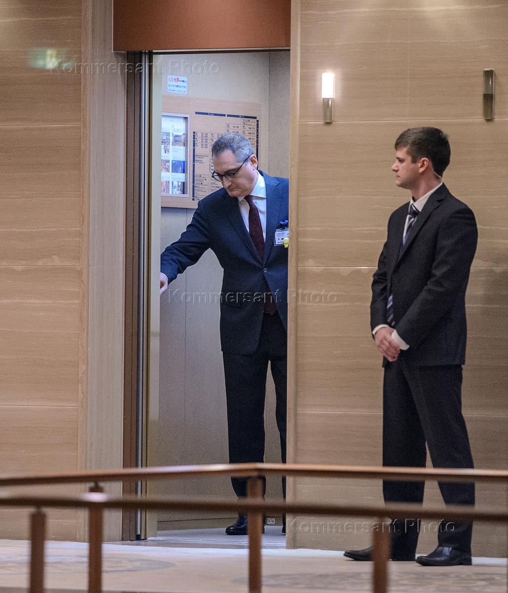 Рабочая поездка президента России Владимира Путина в Японию. Заместитель министра иностранных дел России Игорь Моргулов (слева) перед началом встречи президент России Владимира Путина и премьер-министра Японии Синдзо Абэ.
